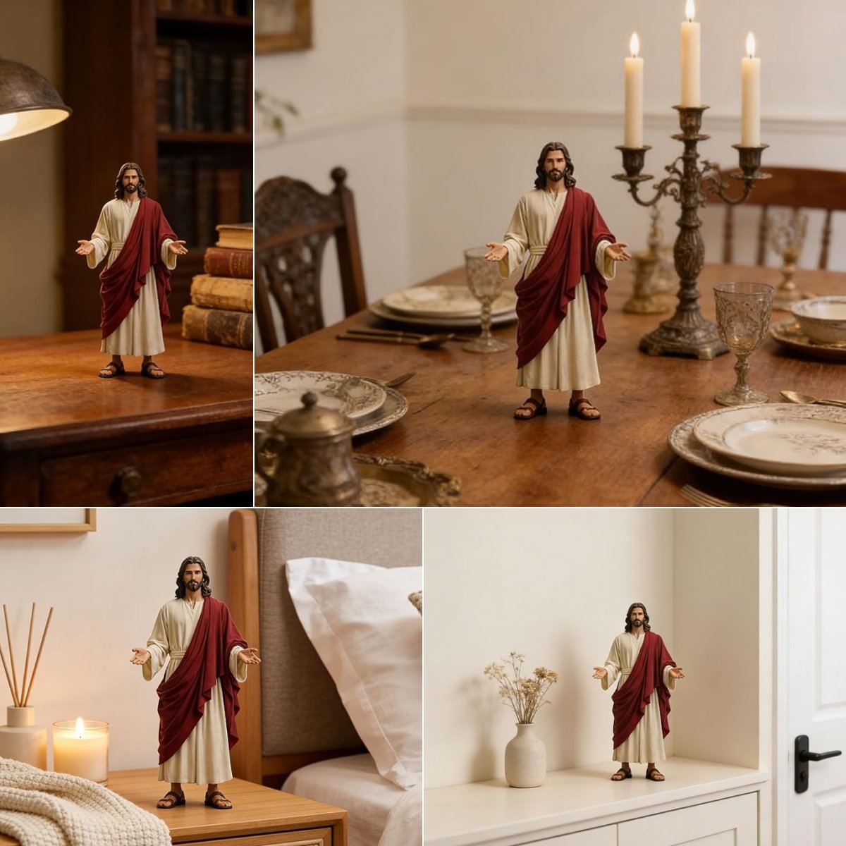 Symbol of Divine Love: Remind your family that jesus loves you figures bring a sense of peace and hope. This jesus figurines wears a flowing cream robe and red cloak, capturing a truly sacred aesthetic.